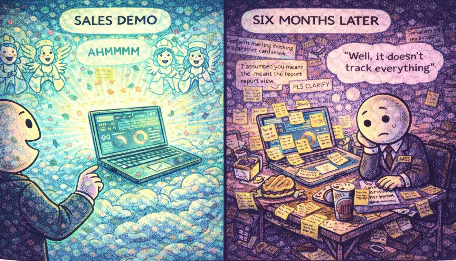 But six months later, you're still emailing CSVs to your carrier. Your ops person is running the same spreadsheet on the side "because the system doesn't track everything." And that beautiful dashboard you saw in the demo? Nobody's logged into it since February.